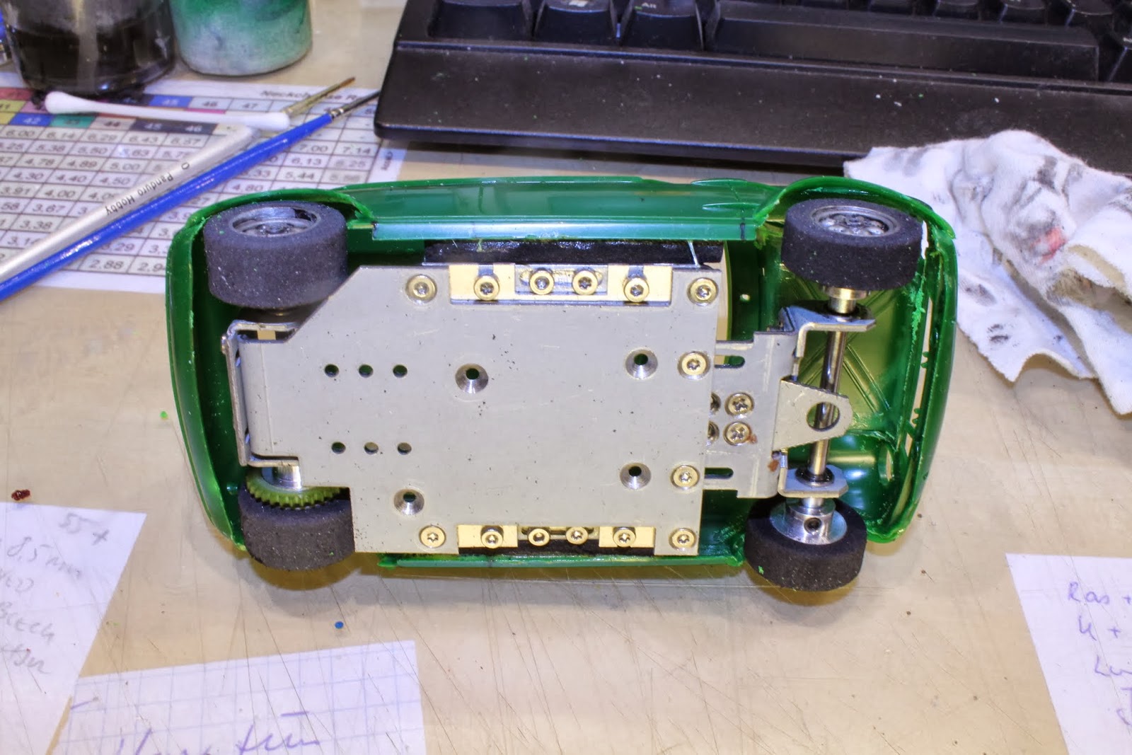 I began with Tamiya's nice plastic kit and a nearly vintage Schöler 1/32 chassis - or at least the parts for the chassis :-)