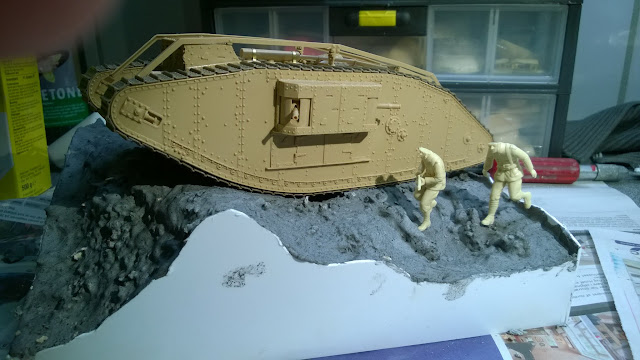 I have always been fascinated by the first tanks of WWI and having purchased an 1:35 Takom MK IV Female tank and a couple of resin British Infantrymen some time ago, I decided to make a go for a small diorama showing a tank in the mud at the Western front.